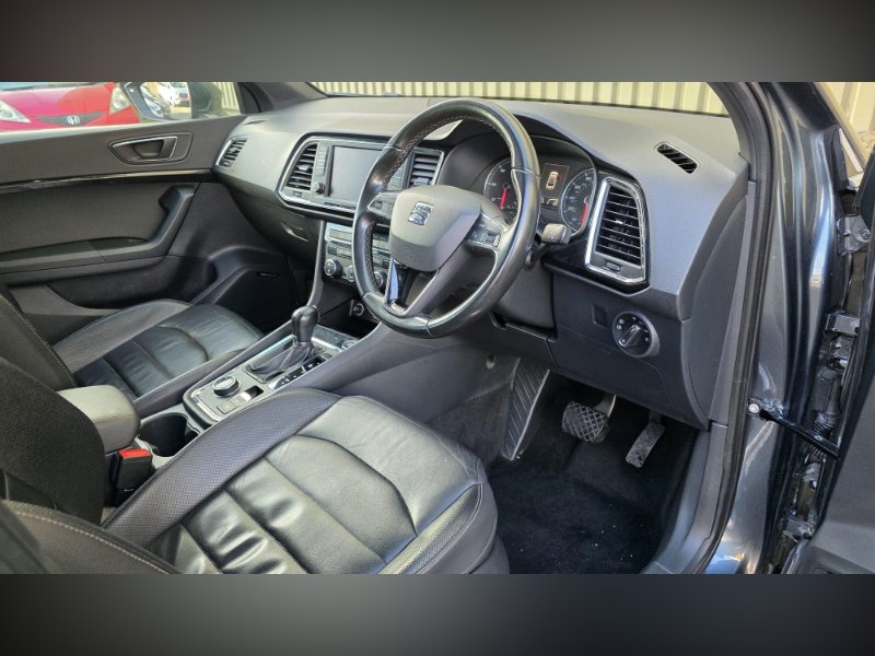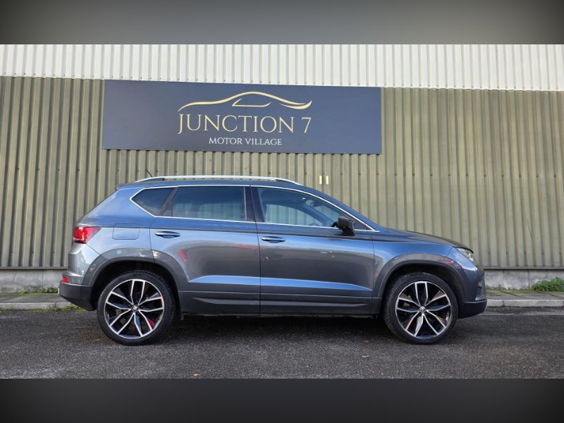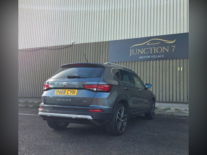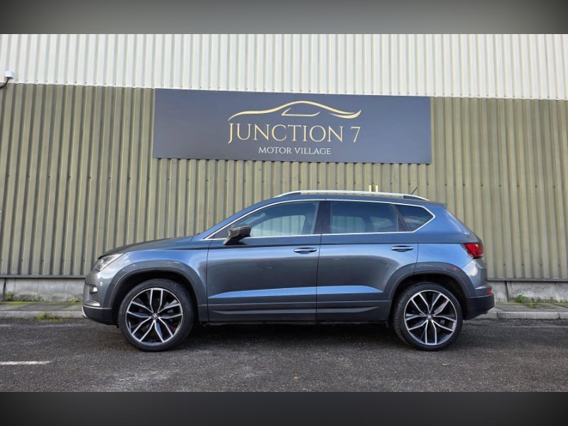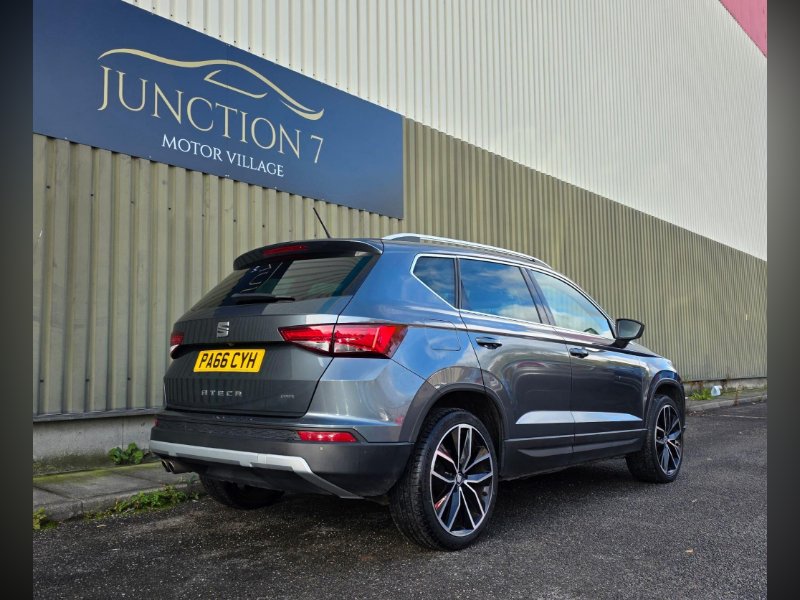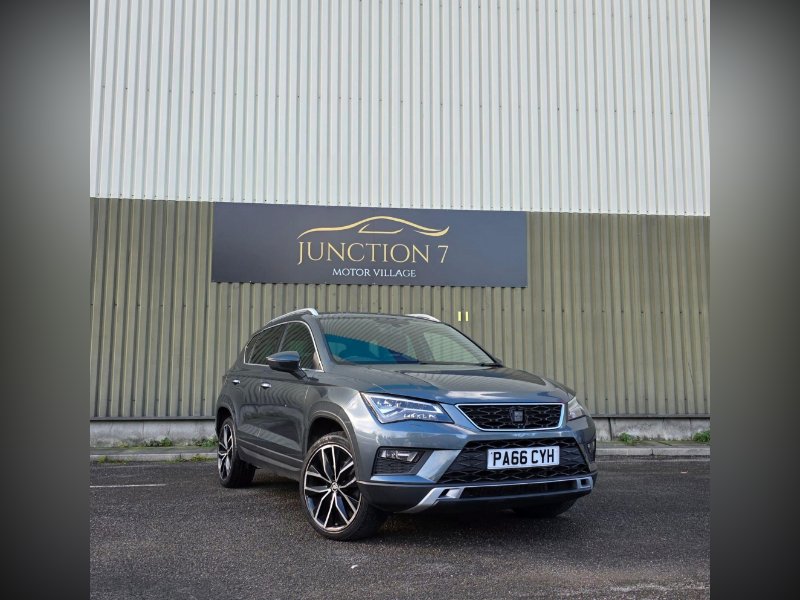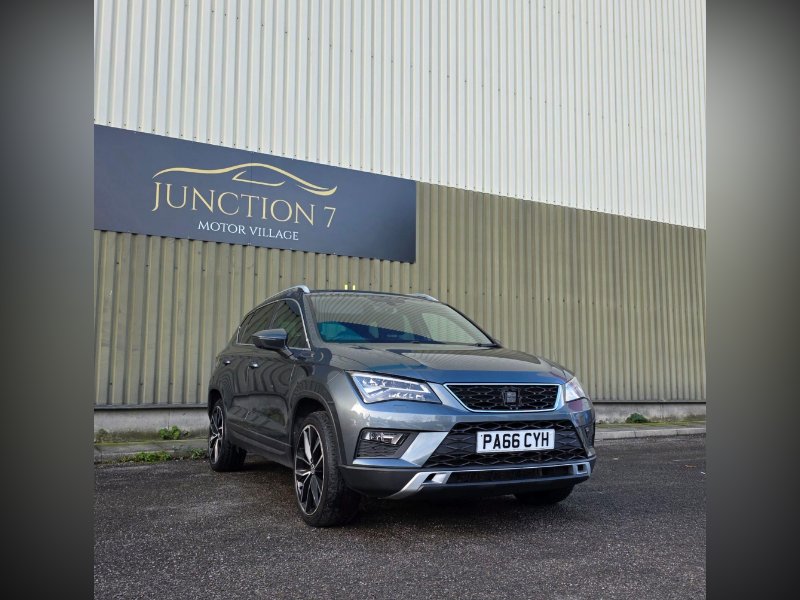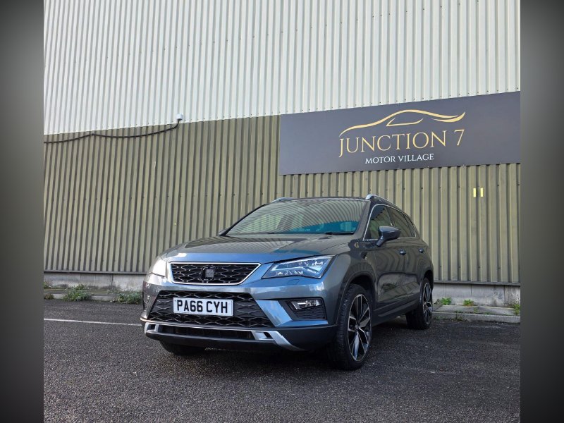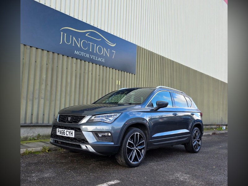 We are proud to present this lovely looking automatic Seat Ateca 4WD from Junction 7 Motor Village based just off Junction 7 of the M65. We are a family run AA Approved dealership prioritizing excellent customer relations and satisfaction. The Ateca is presented with a Metallic Grey exterior and a Black Leather interior. It is a clean example of this popular model from Seat with excellent service history. The bodywork is very good as is the interior however please be aware it may have some light marks commensurate with the age and the mileage of the vehicle. The vehicle is supplied with 2 keys, service history, logbook, mats and locking wheel nut. The full feature list can be found in the features section below and includes a rear parking camera, front and rear parking sensors, Bluetooth phone connectivity, DAB receiver and satellite navigation.